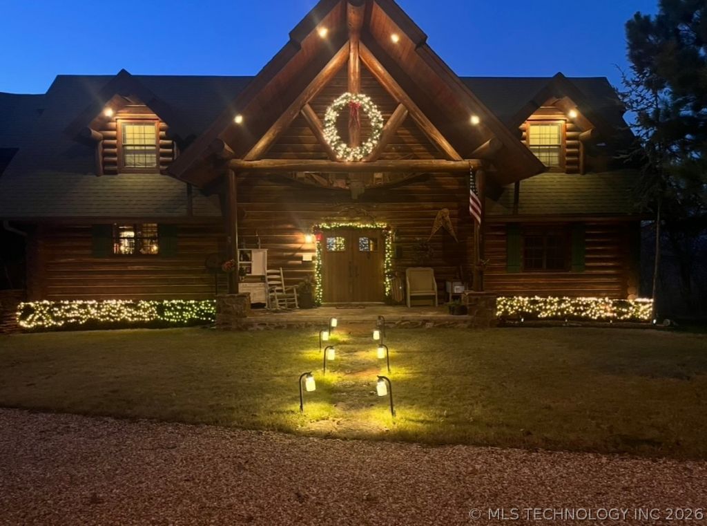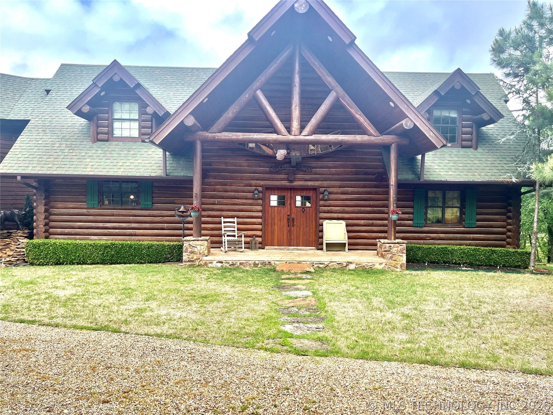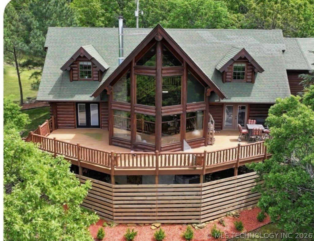 Experience elevated lake living at Stone Ridge in this stunning custom-built log home that offers year-round breathtaking scenery of Lake Tenkiller in beautiful Cherokee County, Oklahoma. Constructed in 2013 with 10-inch aged Idaho cedar and white pine logs, this home blends rustic craftsmanship with refined luxury and showcases quality that is rarely found. Inside, soaring 22-foot ceilings, tongue-and-groove pine floors, granite countertops, custom kitchen, and a dramatic stone wood burning fireplace create a warm yet impressive atmosphere. The 4-bedroom, 2.5-bath layout features a private master en-suite with a spa-inspired shower, bonus room above the garage, and ample living space for entertaining. Step outside onto the 890 square foot wrap-around deck with sunken hot tub and capture stunning lake views in every season. Situated on 1.5 acres, the property also includes a 10' x 12' tiny cabin, oversized 2-car attached garage, and a 1-car detached garage-perfect for guests, hobbies, or lake toys. Located within 15 minutes of Chicken Creek at Lake Tenkiller and Pine Cove Marina. Vian, Tahlequah and Fort Smith, Arkansas are located within an hour drive from the property. Furnishings and decor are negotiable. If you are looking for a property that offers space, privacy, and versatility rarely found near Lake Tenkiller, you should give this stunning home a look.
