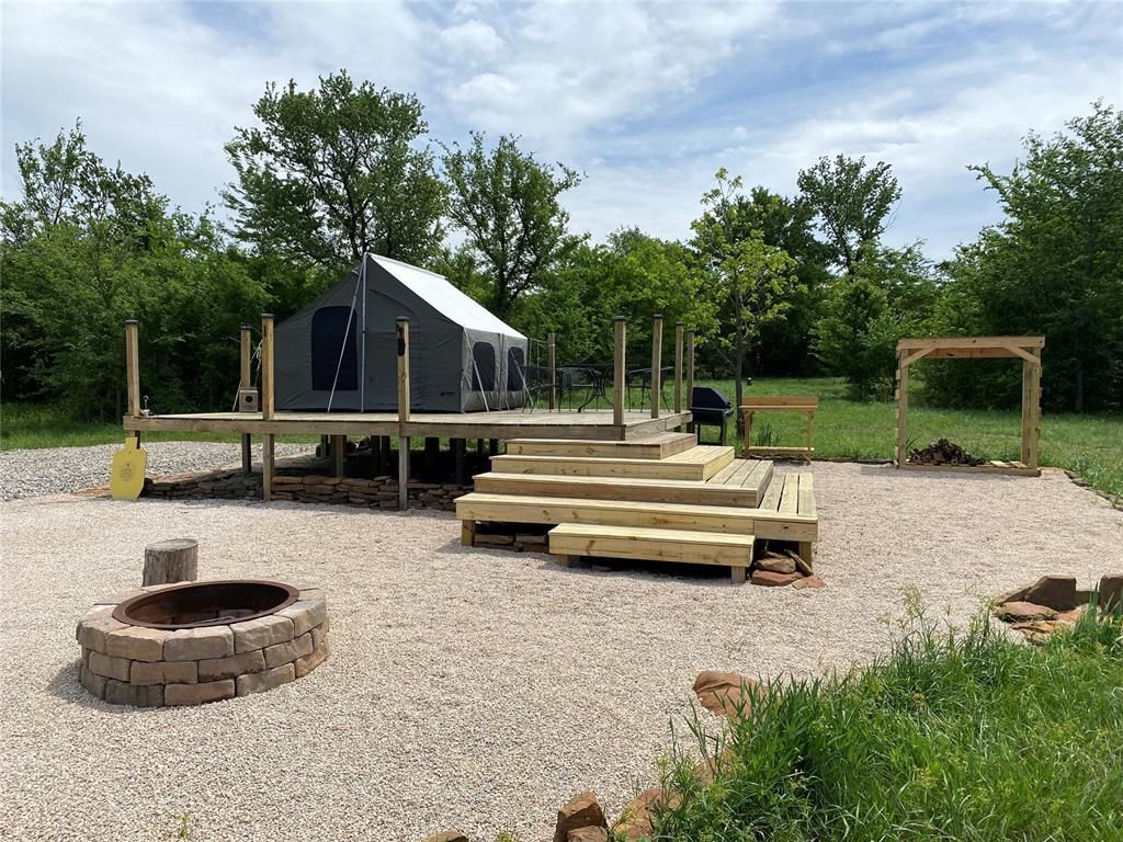 Hunting, Archery & PewPew - If hunting, shooting sports, glamping, and ATV riding are your cup of tea, you better hop on this one. Sitting just outside Dustin on 65 acres of prime Oklahoma recreational ground, this property has been meticulously built out and is ready to enjoy from the moment you close - no waiting, no building, just get out there.HUNT READY: Two tower blinds positioned across open meadows with mature timber behind and natural shooting lanes already cleared through the brush. Multiple ground blind clearings strategically spread throughout for added versatility season after season.SHOOT & PRACTICE: Two dedicated shooting zones - a shooting table with downrange targets for firearms. Shoot from the elevated deck too.GLAMPING DONE RIGHT: Brand new stove-ready 10x10 Kodiak tent tightly secured to the deck is optional with the property. Tiered steps lead down to a gravel courtyard with stone fire ring, firewood storage arbor, gas grill station, and outdoor dining area. Views across the open meadow and into the treeline are everything.INFRASTRUCTURE: 20' shipping container, gravel parking pad, and a small pond that holds water year-round plus a wet-weather creek. Completely off grid. County-maintained road provides excellent year-round access. **No oil road leases or active wells**** ALL BOUNDARY & INFORMATION PROVIDED TO THE BEST OF OUR KNOWLEDGE - BUYER TO VERIFY **
